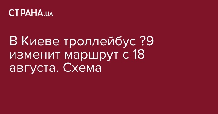 В Киеве с 18 августа изменится маршрут следования троллейбусов № 9, сообщили в пресс-службе Киевской городской государственной администрации (КГГА).
