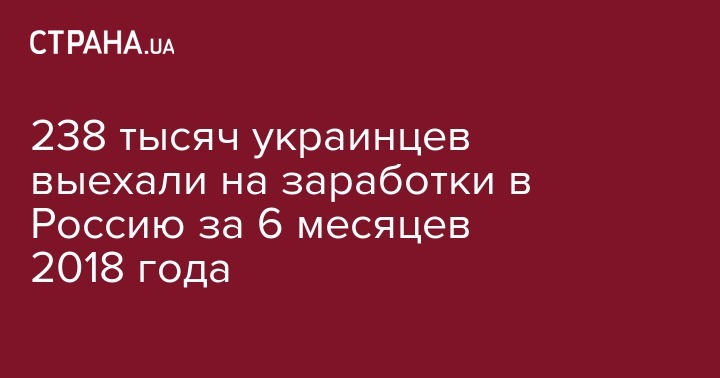 В январе-июне 2018 около 238 700 украинцев выехали в Россию на заработки, еще 242,2 тысячи поехали туда с частным визитом. Об этом пишет Интерфакс, ссылаясь на миграционные данные Министерства внутренних дел РФ.