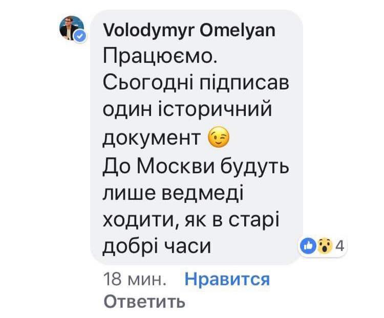 "Сегодня подписал один исторический документ. В Москву будут ходить только медведи, как в старые добрые времена", – написал министр в соцсети.