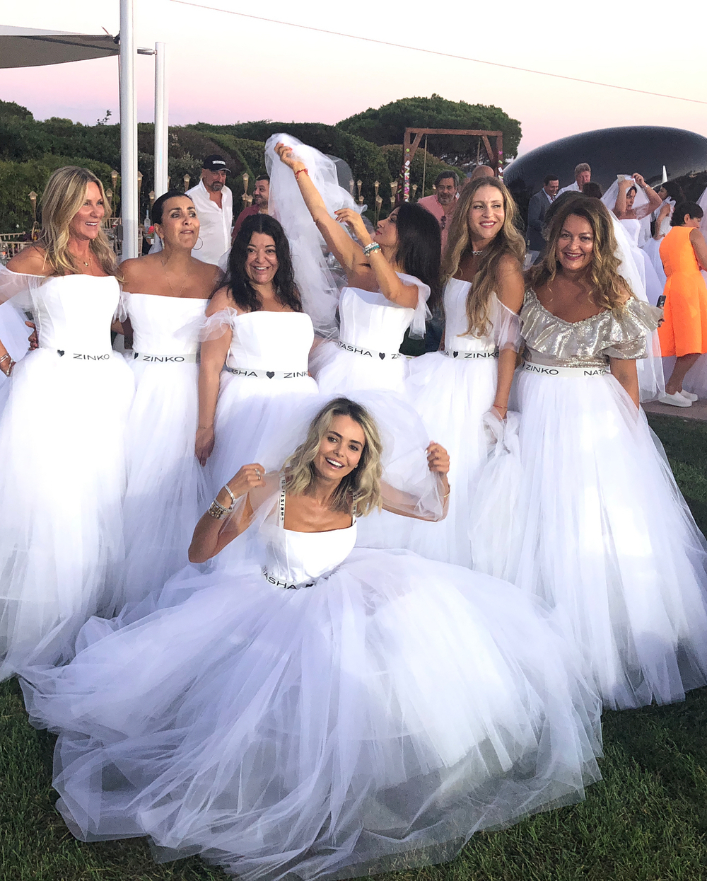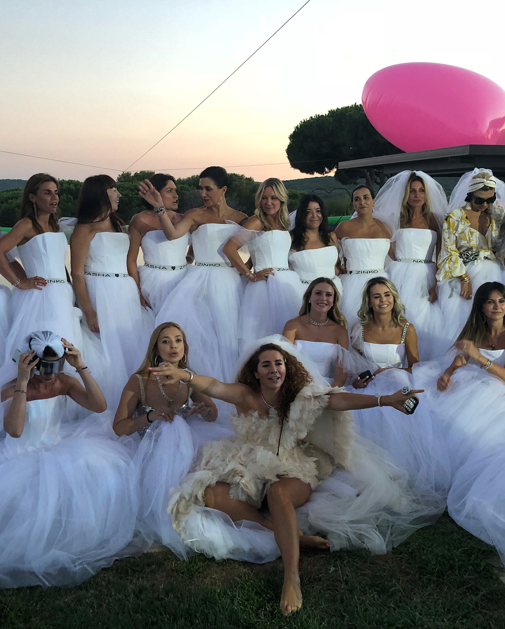 Своим подругам Зинько подарила свадебные платья своей марки Natasha Zinko, в которых они и были на вечеринке.