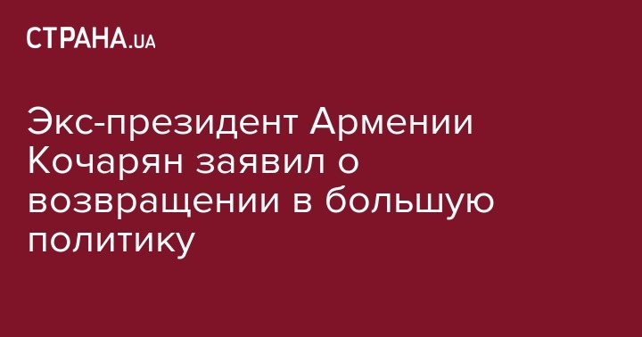 Экс-президент Армении Кочарян заявил о возвращении в большую политику