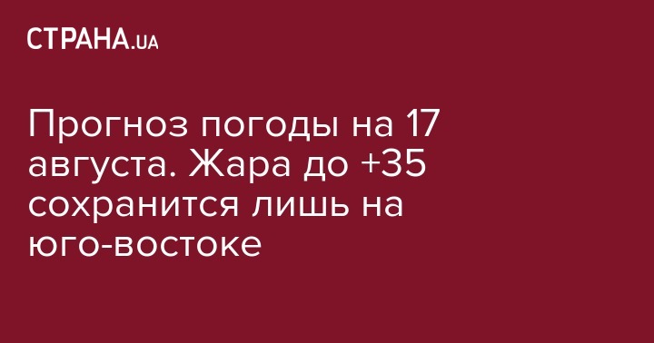 Сегодня, 17 августа, сухая и жаркая погода ожидается только на юго-востоке Украины, на остальной территории страны пройдут дожди с грозами, днем до +29 градусов. Об этом сообщает сайт Укргидромецентра.