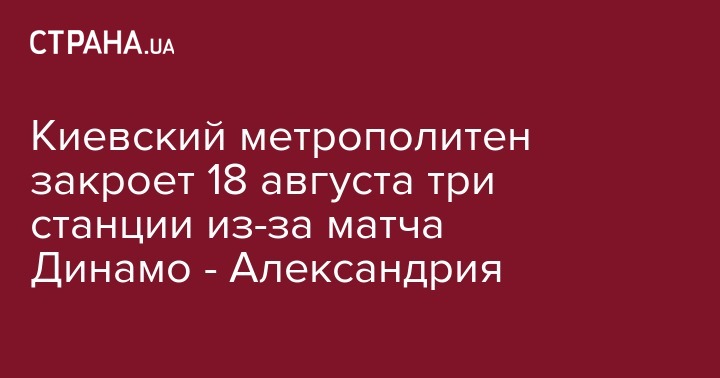 Киевский метрополитен закроет 18 августа три станции из-за матча Динамо - Александрия