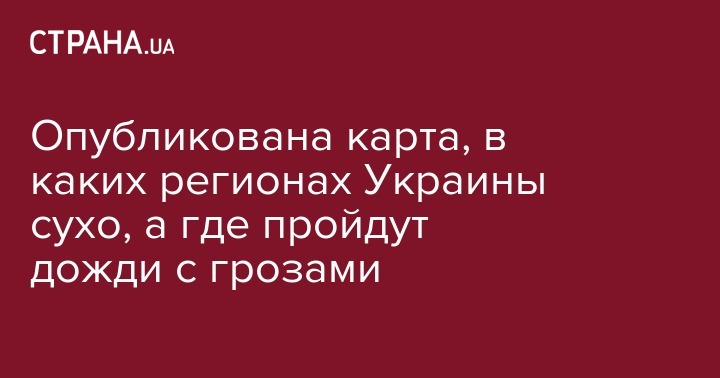 Опубликована карта, в каких регионах Украины сухо, а где пройдут дожди с грозами