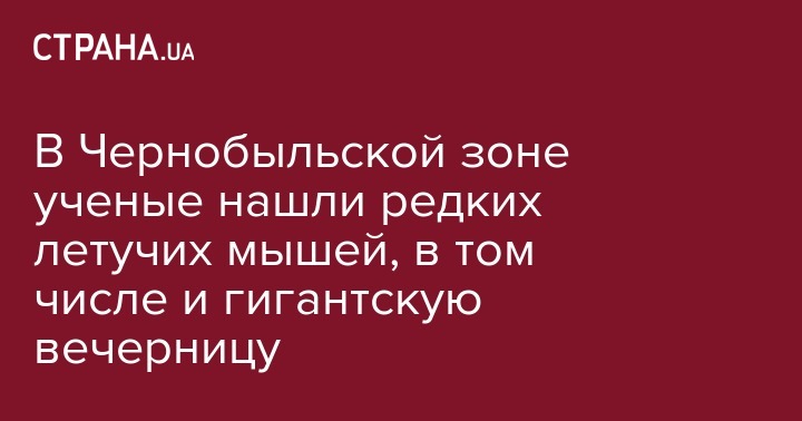В зоне отчуждения ЧАЭС ученые обнаружили девять редких видов летучих мышей, в том числе зафиксировано появление гигантской вечерницы - крупнейшей и очень редкой летучей мыши Европы. Об этом сообщает Государственное агентство Украины по управлению зоной отчуждения на своей странице в Facebook в пятницу.