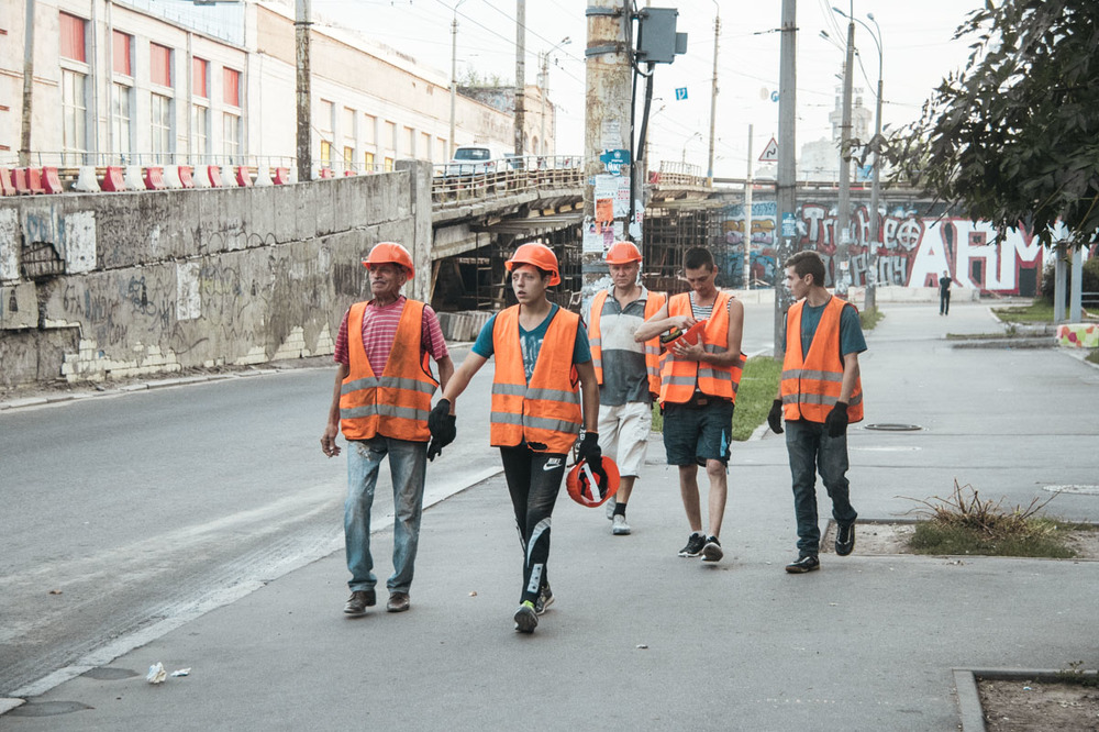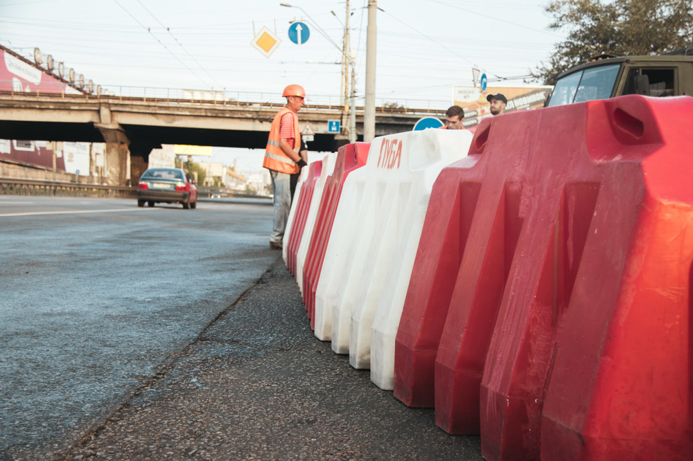 Закрытие моста началось в шесть утра. Рабочие оградили путепровод конусами, а позже поставили по краям моста и на прилегающей территории специальные заградители. Все это время на мосту дежурили три патрульных авто и карета скорой помощи.