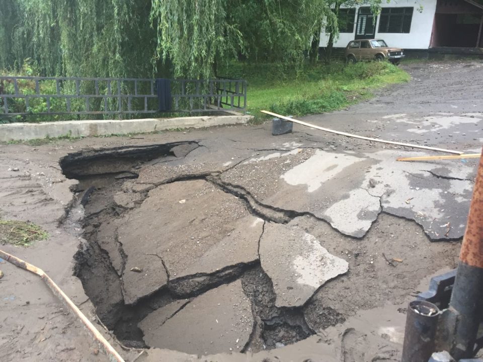 Из-за сильнейшего дождя, который вечером 17 августа накрыл Рахов, обвалилось бетонное покрытие моста на дороге Рахов - Косовская Поляна - Кобылецкая Поляна.