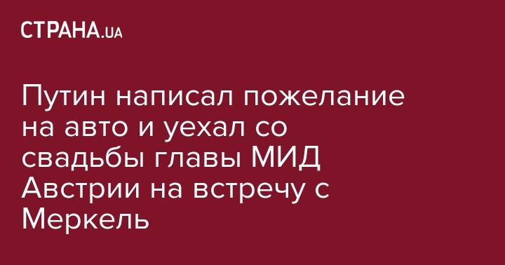 Президент России Владимир Путин покинул свадьбу министра иностранных дел Австрии Карин Кнайсль и австрийского бизнесмена Вольфганга Майлингера, на которую опоздал на 10 минут. Об этом сообщает телеканал Oe24.