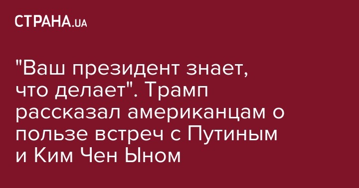 "Ваш президент знает, что делает". Трамп рассказал американцам о пользе встреч с Путиным и Ким Чен Ыном