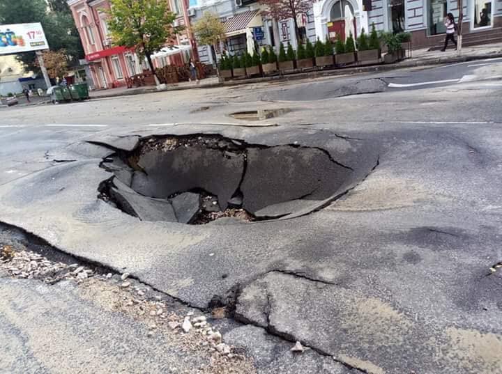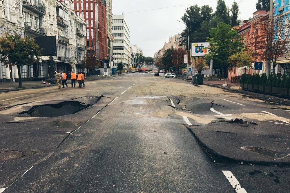 В Киеве после ночного потопа образовались огромные ямы на дорогах. Фото