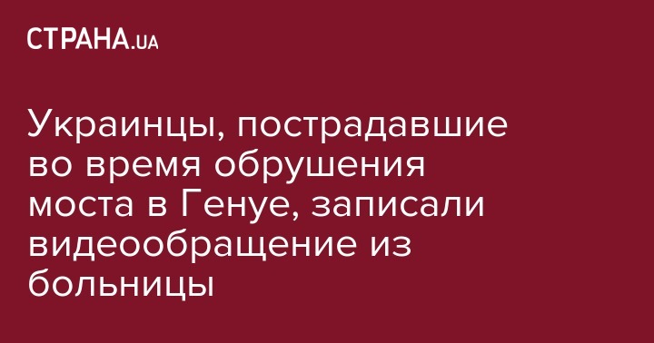 Двое украинцев, которые пострадали в результате обрушения моста в итальянской Генуе, обратились со словами благодарности ко всем, кто их поддерживал. Видеообращение опубликовано на странице Евгения Бабина в Facebook.