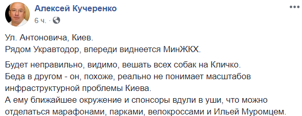 "Будет неправильно, видимо, вешать всех собак на Кличко. Беда в другом – он, похоже, реально не понимает масштабов инфраструктурной проблемы Киева.
