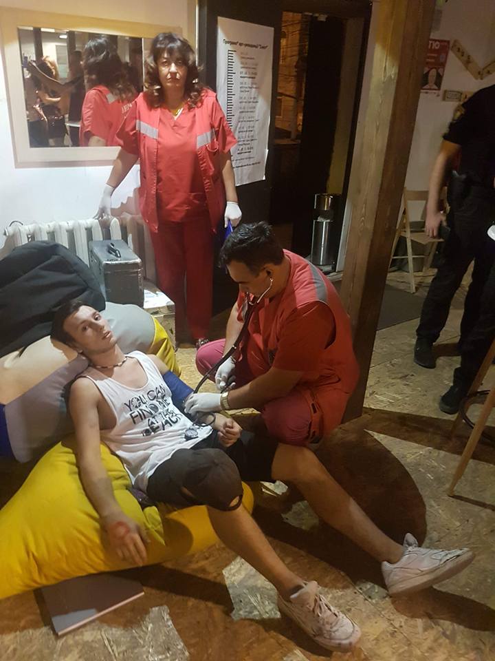 "Мы вызвали охрану, полицию и скорую, сейчас они работают на месте. Состояние повреждений пока неизвестно, у молодежи - сотрясения и синяки. В помещении много сломанной мебели и техники, разбит пол. Хорошо, что все живы и относительно цели", - говорится в сообщении.