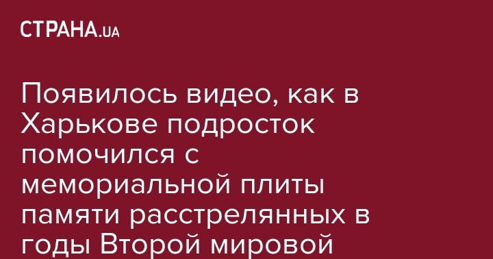 Появилось видео, как в Харькове подросток помочился с мемориальной плиты памяти расстрелянных в годы Второй мировой