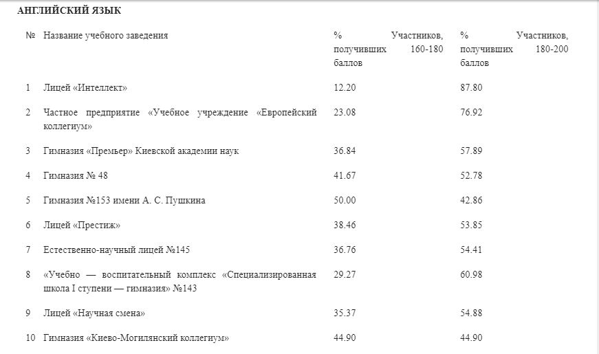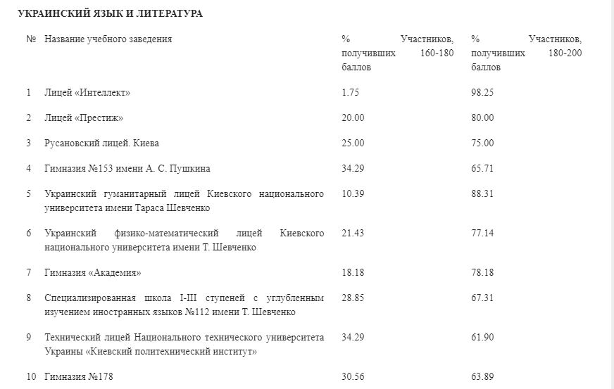 За основу были взяты результаты по самым сдаваемым предметам: украинскому языку и литературе, математике, истории, английскому языку и географии.