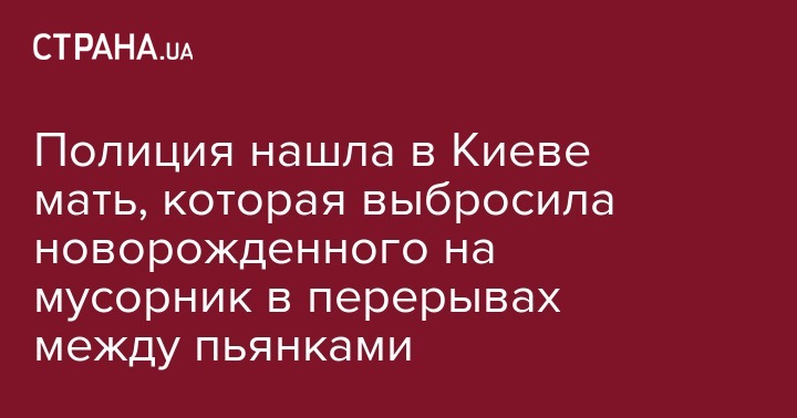 Полиция нашла в Киеве мать, которая выбросила новорожденного на мусорник в перерывах между пьянками