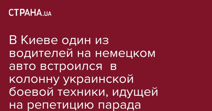 В Киеве один из водителей на немецком авто встроился в колонну украинской боевой техники, идущей на репетицию парада