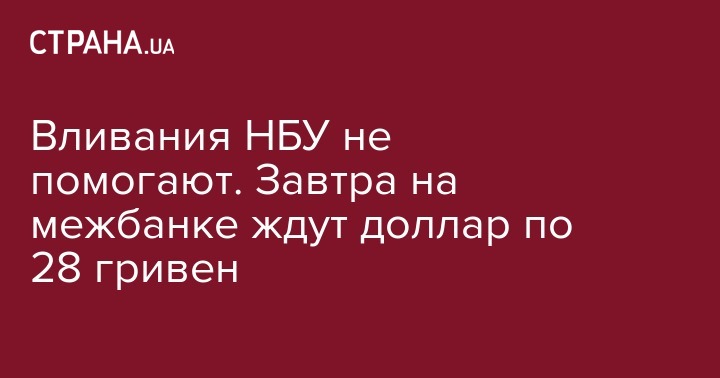 Вливания НБУ не помогают. Завтра на межбанке ждут доллар по 28 гривен