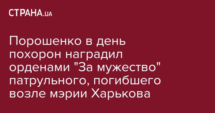 Президент Украины Петр Порошенко своим указом наградил харьковских патрульных полицейских Александра Ростовского и его напарника Дмитрия Кириенко, погибшего в результате стрельбы в ночь на понедельник возле горсовета, орденами "За мужество".