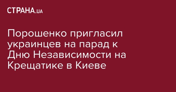 "Приглашаю всех 24 августа, в 10.00 на Крещатик, чтобы вместе отметить День Независимости", - написал Порошенко на своей странице в соцсети Facebook в среду.