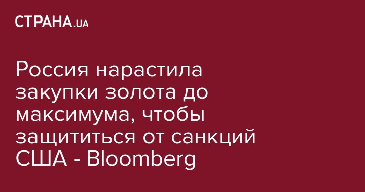 Россия нарастила закупки золота до максимума, чтобы защититься от санкций США - Bloomberg