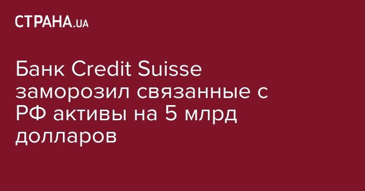 Швейцарский банк Credit Suisse в связи с санкциями США в отношении России заморозил активы, связанные с РФ, на сумму около 5 млрд долларов. Об этом в среду сообщает агентство Reuters.