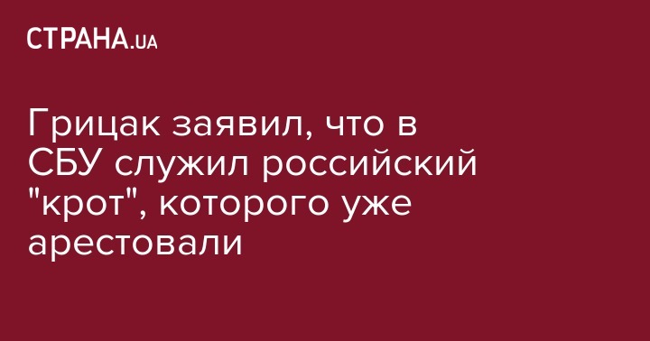 "Мы обнаружили в своих рядах, так сказать, "крота". Этого "крота" отработали, задержали, задокументировали. Избрана мера пресечения - содержание под стражей. У нас в работе есть еще очень много дел, к сожалению, по которым мы проверяем на возможную причастность к работе на российские спецслужбы как сотрудников Службы безопасности, так и других граждан Украины, которые работают или служат в других учреждениях и военизированных формированиях", - сказал Грицак.