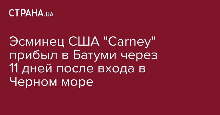 Эсминец военно-морских сил США "Carney" (DDG 64), который 12 августа вошел в Черное море для проведения операций по обеспечению безопасности на море, прибыл в Батуми. Здесь корабль пробудет до 25 августа. Об этом сообщает ТАСС.