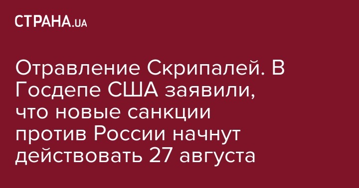 Отравление Скрипалей. В Госдепе США заявили, что новые санкции против России начнут действовать 27 августа