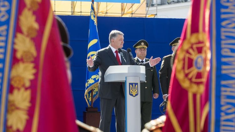 Петр Порошенко произнес речь на День независимости Украины. Она изобиловала военно-патриотической риторикой, обличениями Москвы и новыми заверениями в том, что с общей украино-российской историей покончено.