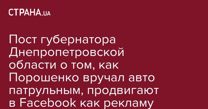 Пост губернатора Днепропетровской области о том, как Порошенко вручал авто патрульным, продвигают в Facebook как рекламу