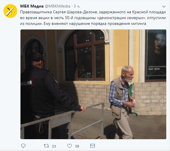 25 августа в Москве прошел митинг в честь 50-летия "Демонстрации семерых" акции 1968 года, когда семь диссидентов на Красной площади протестовали против введения в Чехословакию войск СССР.