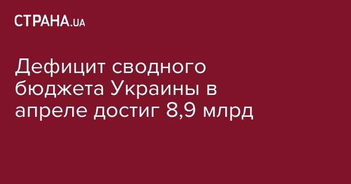 Дефицит сводного бюджета Украины в апреле достиг 8,9 млрд