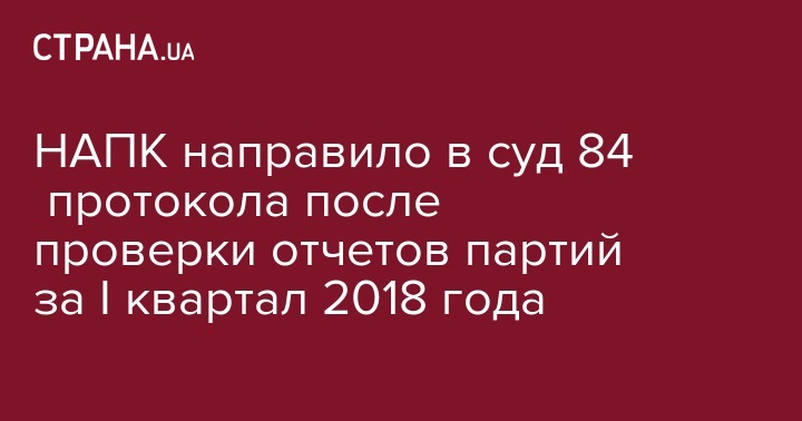 Национальное агентство по предупреждению коррупции (НАПК) составило и направило в суд 84 административных протокола по результатам анализа отчетов политических партий об имуществе, доходах, расходах и обязательствах финансового характера за I квартал 2018 года.