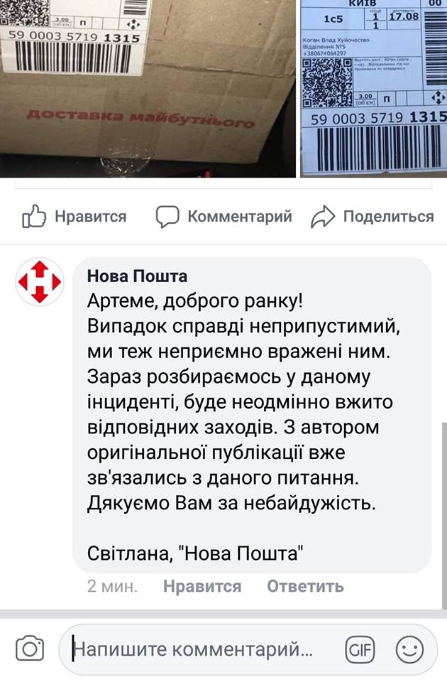 В Новой почте уже отреагировали на инцидент и заявили, что разберутся.