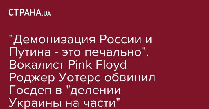 "Демонизация России и Путина - это печально". Вокалист Pink Floyd Роджер Уотерс обвинил Госдеп в "делении Украины на части"