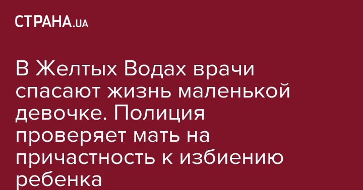 В Днепропетровской области, в городе Желтые Воды врачи спасают жизнь четырехлетней девочке, которую, вероятно, избила мать или ее сожитель. Об этом идет речь в сюжете ТСН.