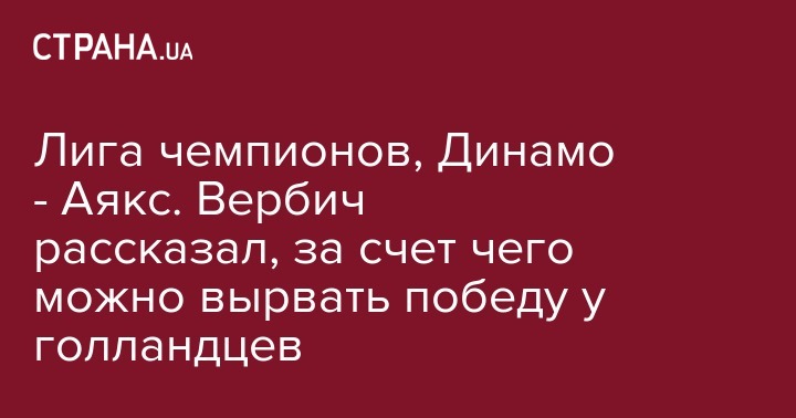 Лига чемпионов, Динамо - Аякс. Вербич рассказал, за счет чего можно вырвать победу у голландцев