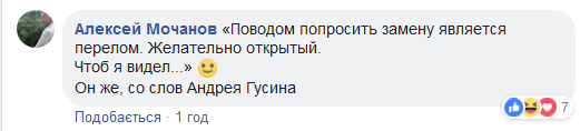 "Поводом попросить замену является перелом. Желательно открытый. Чтоб я видел... Он же, со слов Андрея Гусина", - написал Алексей Мочанов.