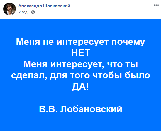 "Меня не интересует, почему нет. Меня интересует, что ты сделал для того, чтобы было да!" В.В. Лобановский", - написал Шовковский.