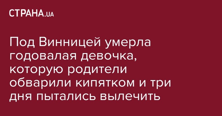 В районной больнице под Винницей умерла от ожогов годовалая девочка. Об этом сообщает пресс-служба ГУ Нацполиции в Винницкой области.