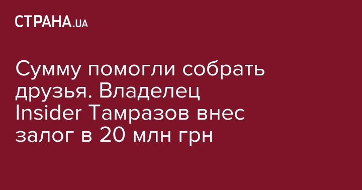 Сумму помогли собрать друзья. Владелец Insider Тамразов внес залог в 20 млн грн