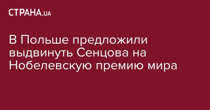 В Польше предлагают выдвинуть кандидатуру украинского режиссера, политзаключенного Кремля Олега Сенцова в кандидаты на Нобелевскую премию мира. Об этом на своей странице в Facebook написал министр культуры Украины Евгений Нищук,