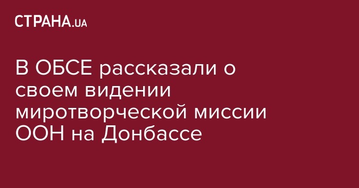 В ОБСЕ рассказали о своем видении миротворческой миссии ООН на Донбассе