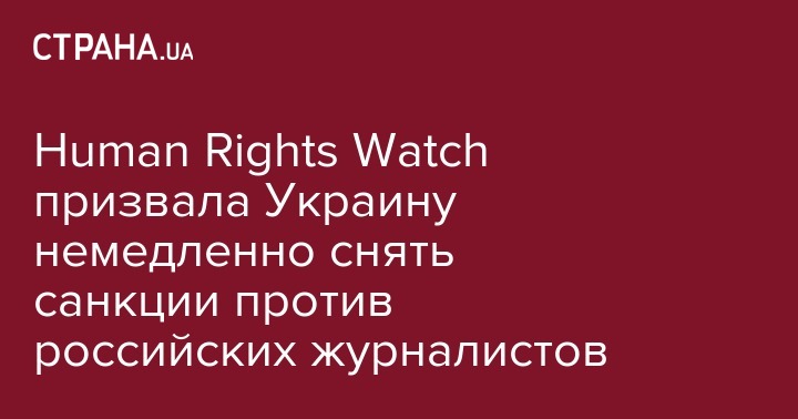 В ответ на введение в Украине персональных санкций против представителей российских СМИ, Международная правозащитная организация Human Rights Watch обратилась к украинским властям с призывом немедленно отменить антижурналистские санкции.