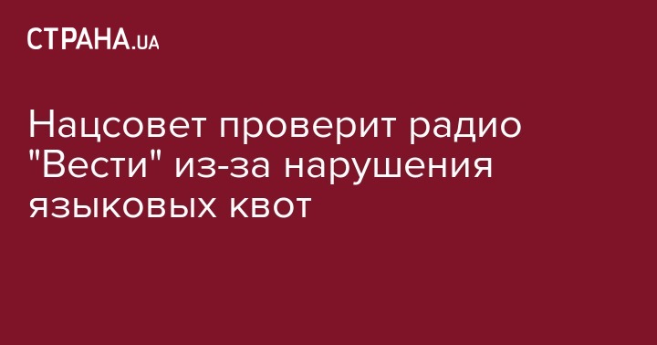 Нацсовет по вопросам телевидения и радиовещания внепланово проверит киевскую радиостанцию "Радио.Вести" (ООО "Телерадиокомпания "Мир") из-за нарушения языковых квот в отношении ведения передач на государственном языке. Об этом сообщает "Укринформ".