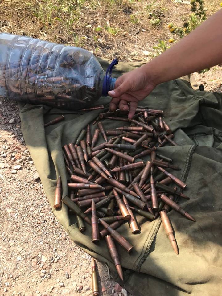 В зоне ООС военнослужащие Лисичанского погранотряда нашли на подконтрольной территории, вблизи линии столкновения, тайник с боеприпасами. Он был найден на кладбище возле поселка Золотое-4 (часть г.Золотое Луганской области), занятого ВСУ в конце июня.