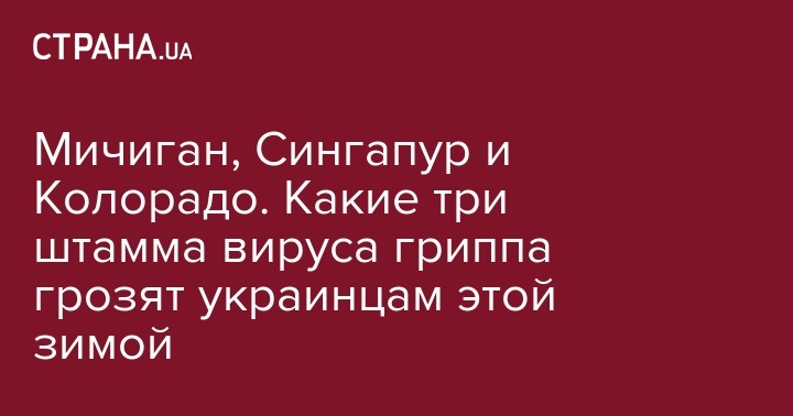 В новом эпидемиологическом сезоне в Украине прогнозируют три штамма вируса гриппа: Мичиган, Сингапур, Колорадо. Об этом сообщает пресс-служба Министерства здравоохранения Украины.