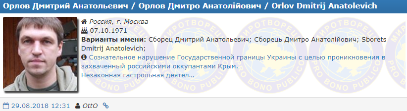 В частности, поводом для внесения Орлова в "Чистилище" стал его приезд в августе в Крым, где он вышел на сцену в спектакле "Очаровательные рогоносцы".