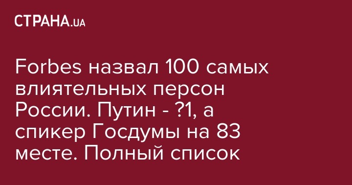 Forbes назвал 100 самых влиятельных персон России. Путин - №1, а спикер Госдумы на 83 месте. Полный список